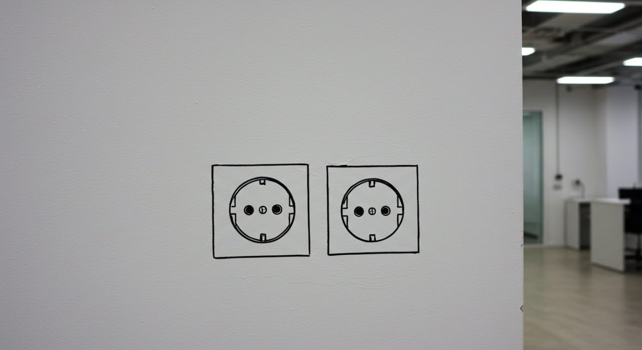 И уже на выходе краем глаза замечаю, что что-то не то. Присматриваюсь. И вижу, что розетки на одной стене НАРИСОВАННЫЕ.